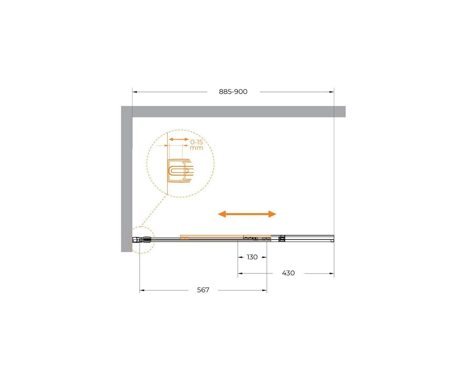 Шторка для ванны оснащена новейшей выдвижной конструкцией, позволяющей значительно увеличить зону принятия душа без опасения забрызгать пол. Вам не нужно поворачивать створку шторки, чтобы войти в ванну для принятия душа.