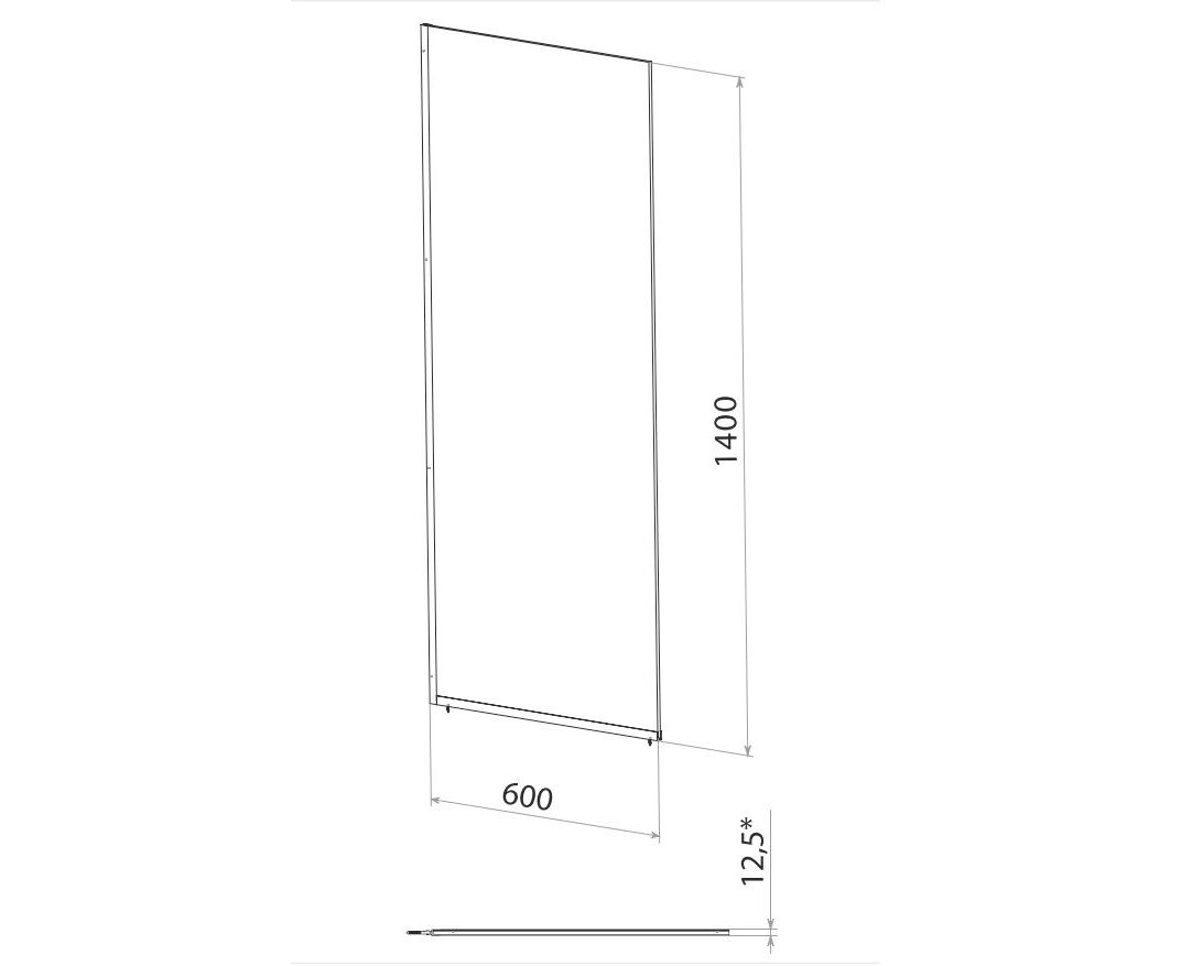 Регулируемая ширина: нет. Конструкция дверей: неподвижная. Исполнение полотна двери: прозрачное. Цвет полотна двери: прозрачное. Толщина полотна двери, мм: 8. Материал полотна двери: закаленное стекло. Материал профиля: алюминий. Цвет профиля: черный матовый. Монтаж: на ванну.