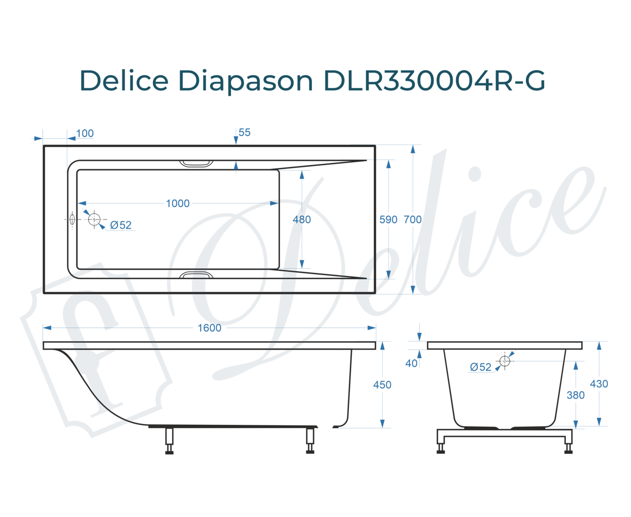 Описание ванны из литьевого мрамора Delice Diapason 160х70 глянцевая с ручками Хром