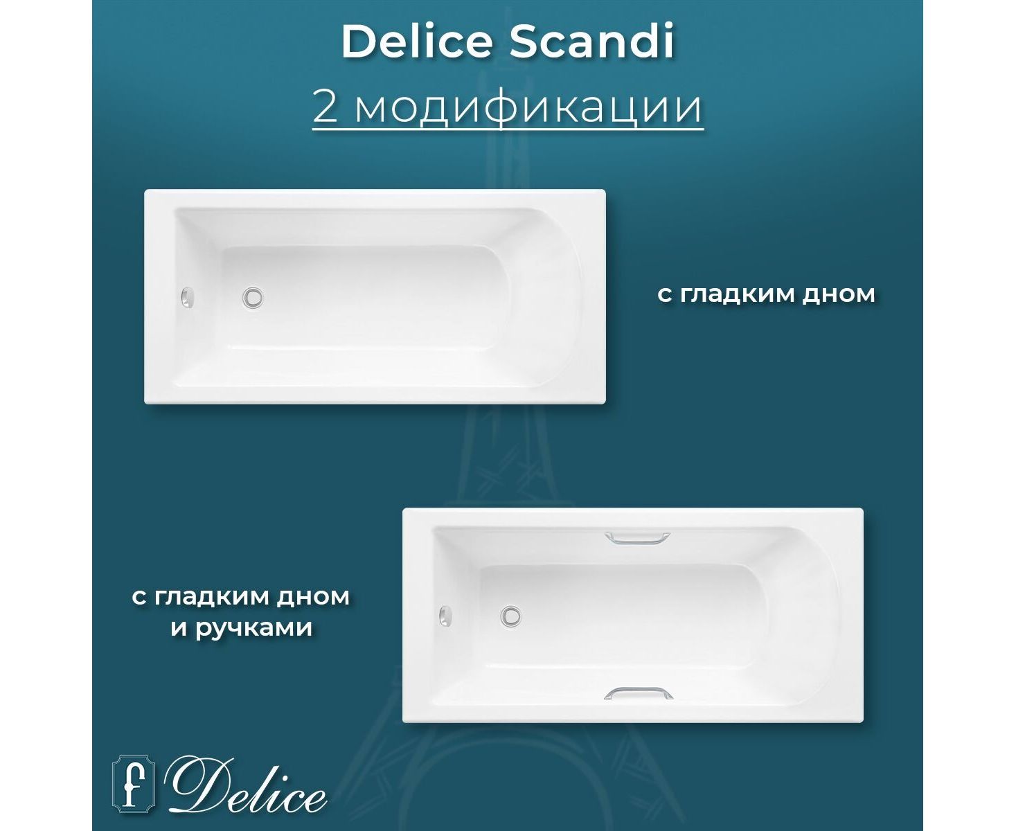 Описание ванны из литьевого мрамора Delice Scandi 160х70 глянцевая с ручками Хром