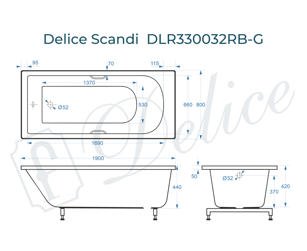 Размерный ряд ванны из литьевого мрамора Delice Scandi: 150х70, 160х70, 165х70, 170х70, 170х75, 170х80, 175х70, 180х70, 180х75, 180х80 и 190х80 см.