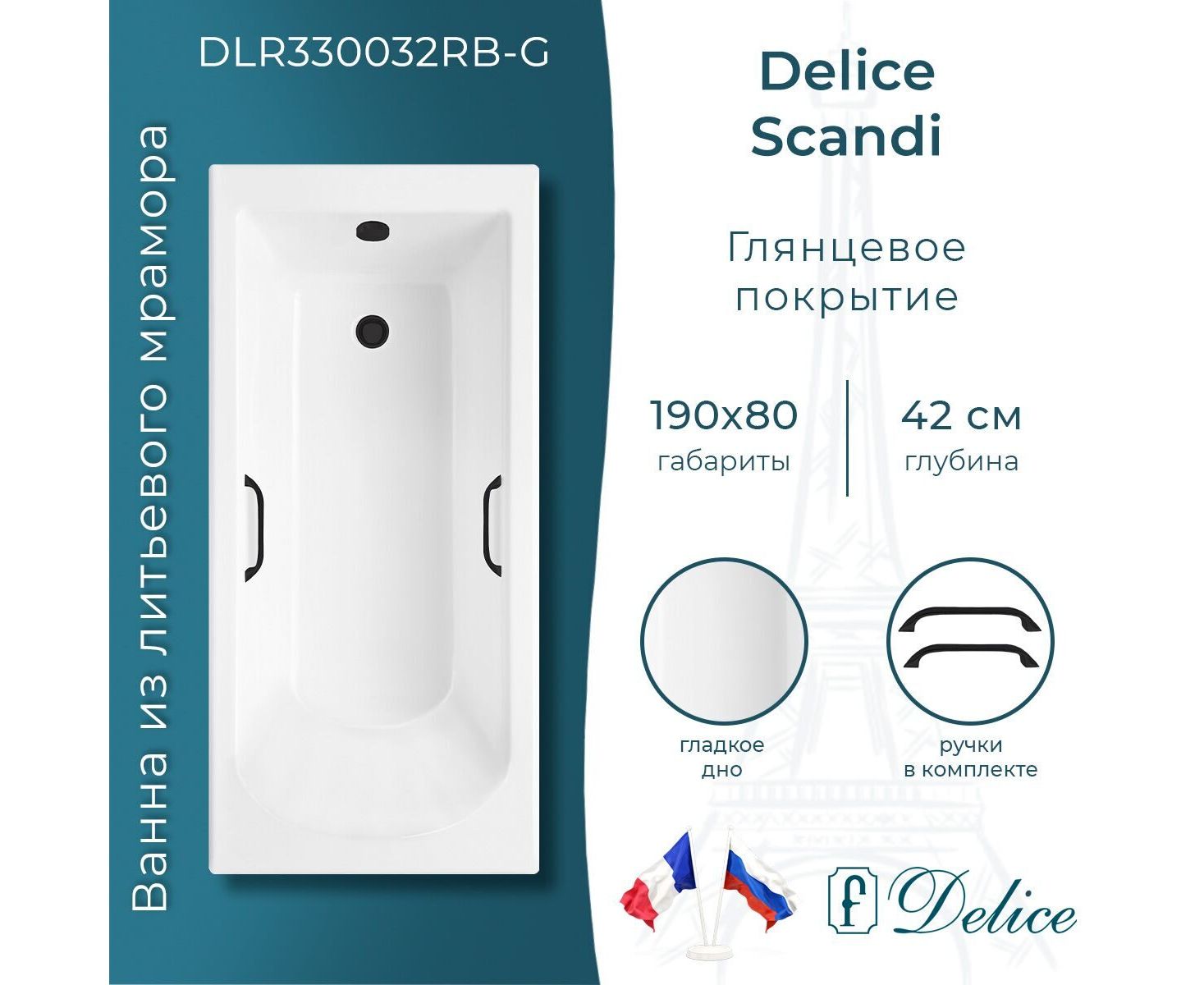 Описание ванны из литьевого мрамора Delice Scandi 190х80 глянцевая с черными ручками
