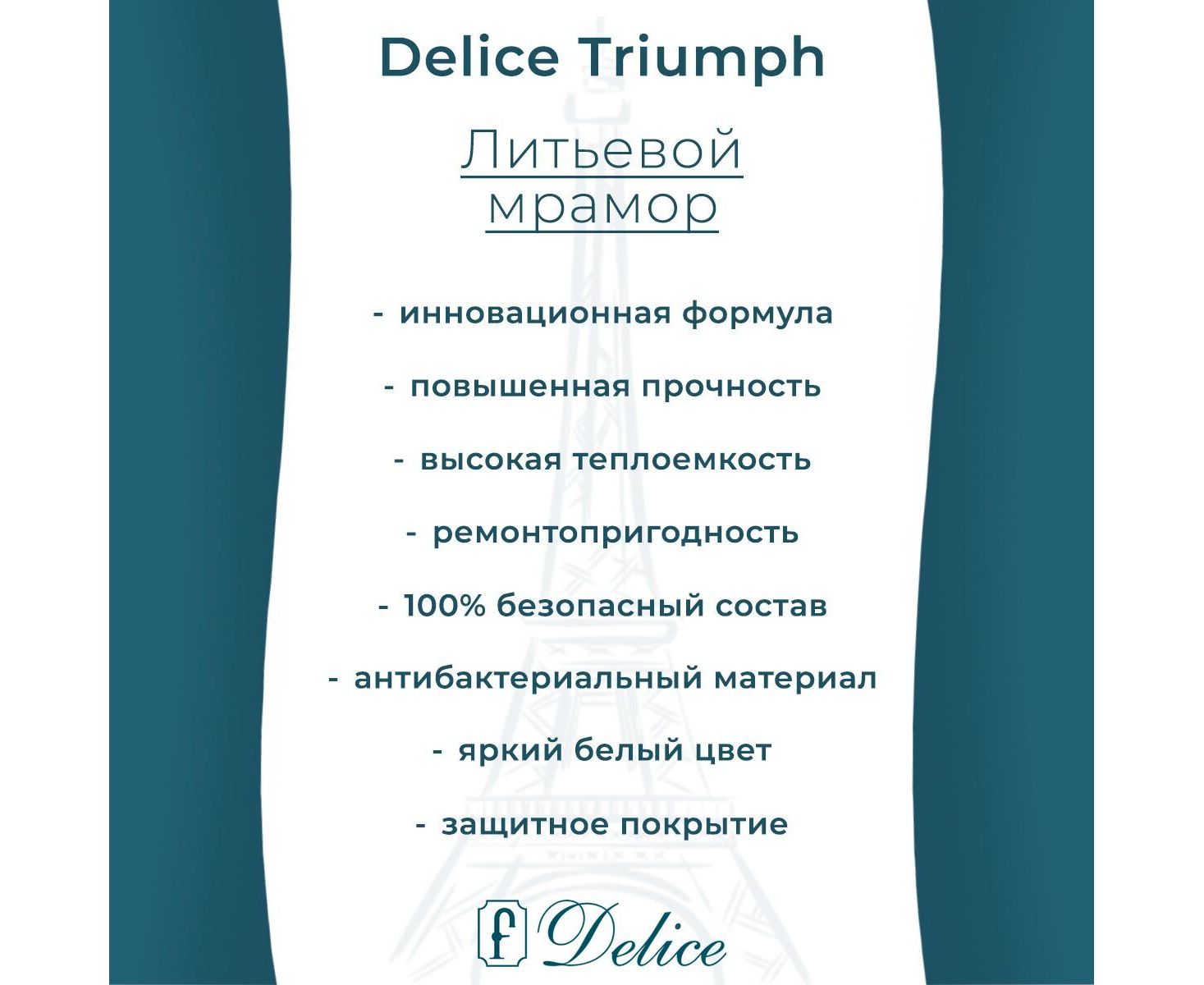 Литьевой мрамор Delice создан по инновационной передовой технологии. Для улучшения характеристик в состав добавляют модифицирующие компоненты, которые придают материалу уникальные свойства: