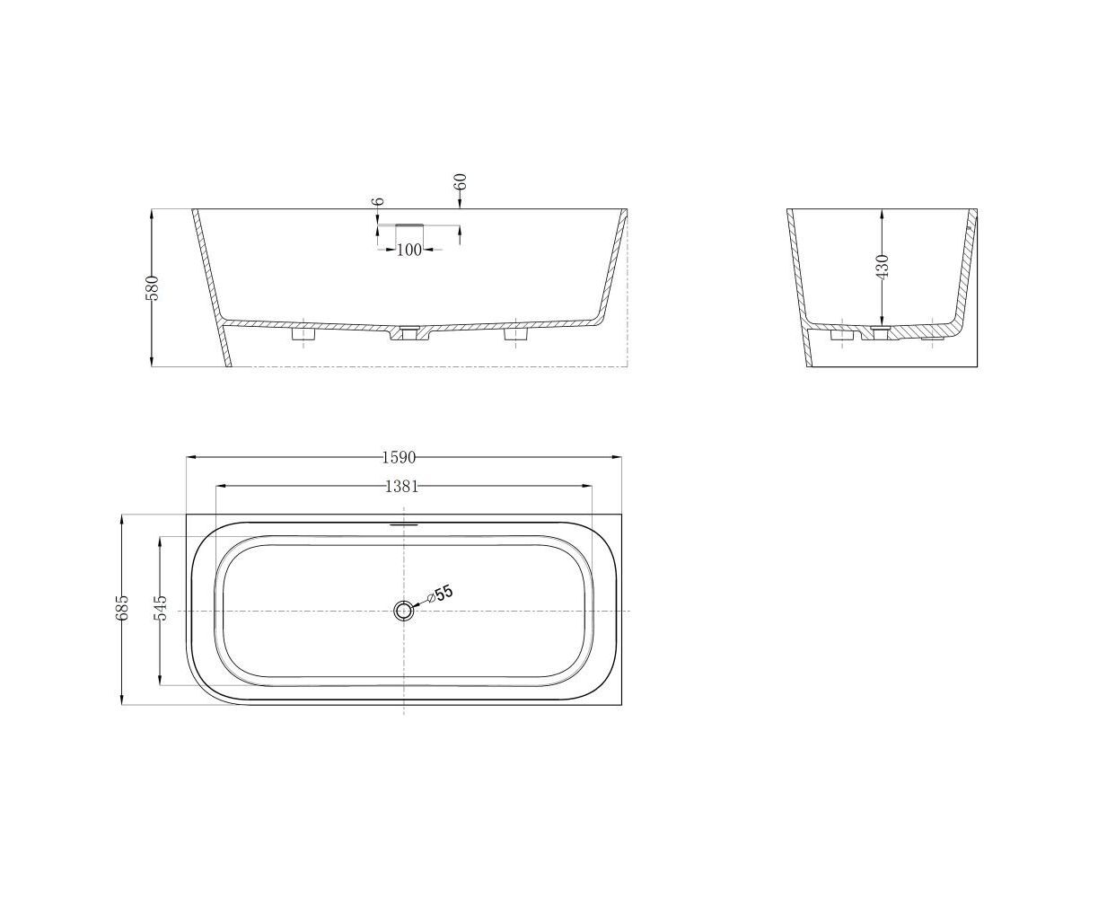 Характеристики Ванна из искусственного камня ABBER Stein AS9680 R белая матовая