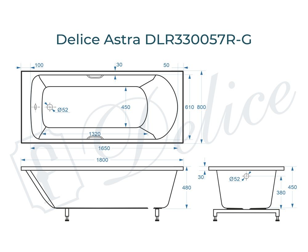 Описание ванны из литьевого мрамора Delice Astra 180х80 глянцевая с ручками Хром