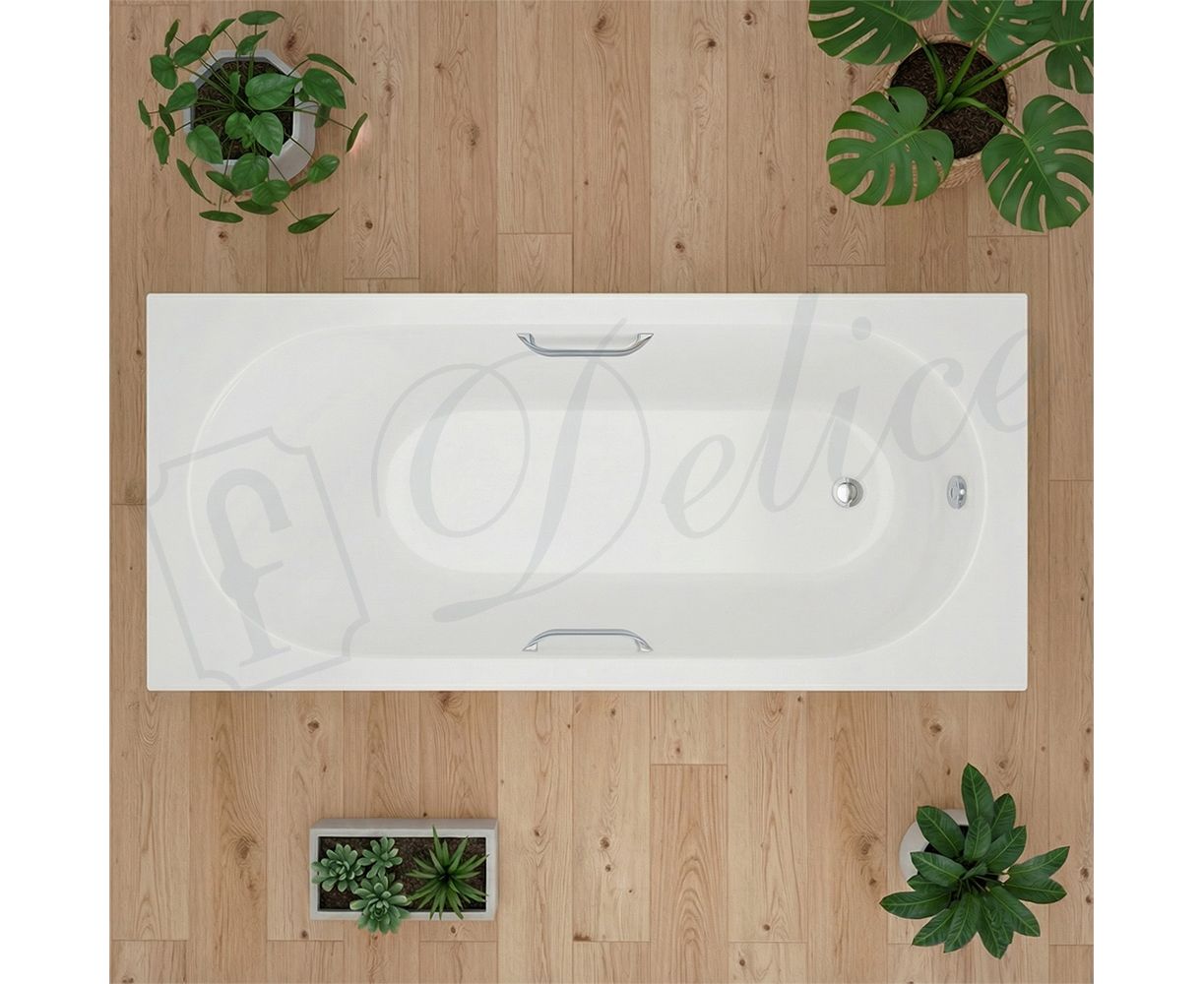 Delice Bravo 180х70 с ручками - классическая модель ванны из литьевого мрамора с глянцевым финишным покрытием. Ванна производится из высокопрочного современного материала. Модель Bravo создана для современных ванных комнат и обладает универсальным дизайном, а, благодаря овальной форме дна, которое смягчает прямоугольную форму самой ванны, она прекрасно впишется в интерьер ванной комнаты. Мягкие линии добавляют ощущение уюта и расслабленности, Delice Bravo создана для отдыха и релаксации. Размер 180х70 см идеально подойдет для ванных комнат большого размера.
