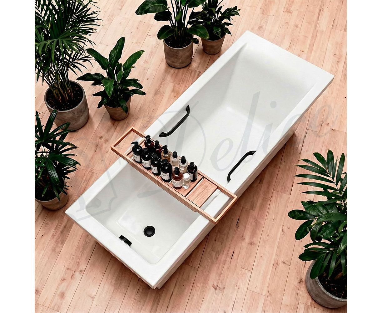 Для установки используются фирменные ножки Delice, которые имеют надежное и прочное крепление, обеспечивают высокую устойчивость ванны и регулируются по высоте. Высота на ножках варьируется от 59.5 до 63 см. С помощью регулировки можно нивелировать геометрические отклонения пола, стен и углов в ванной комнате. За счет высокой плотности материала, при установке не требуется шумоизоляция, а также заземление, так как литьевой мрамор не проводит электрический ток. При необходимости изменения габаритов под ванную комнату, борты ванны можно уменьшить механической обработкой.