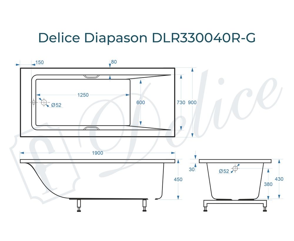 Описание ванны из литьевого мрамора Delice Diapason 190х90 глянцевая с ручками Хром