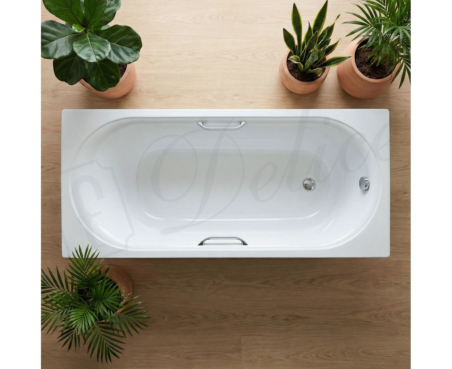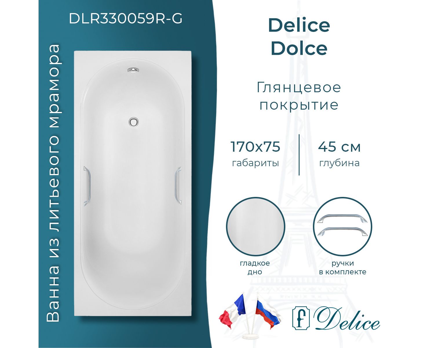 Описание ванны из литьевого мрамора Delice Dolce 170х75 глянцевая с ручками Хром