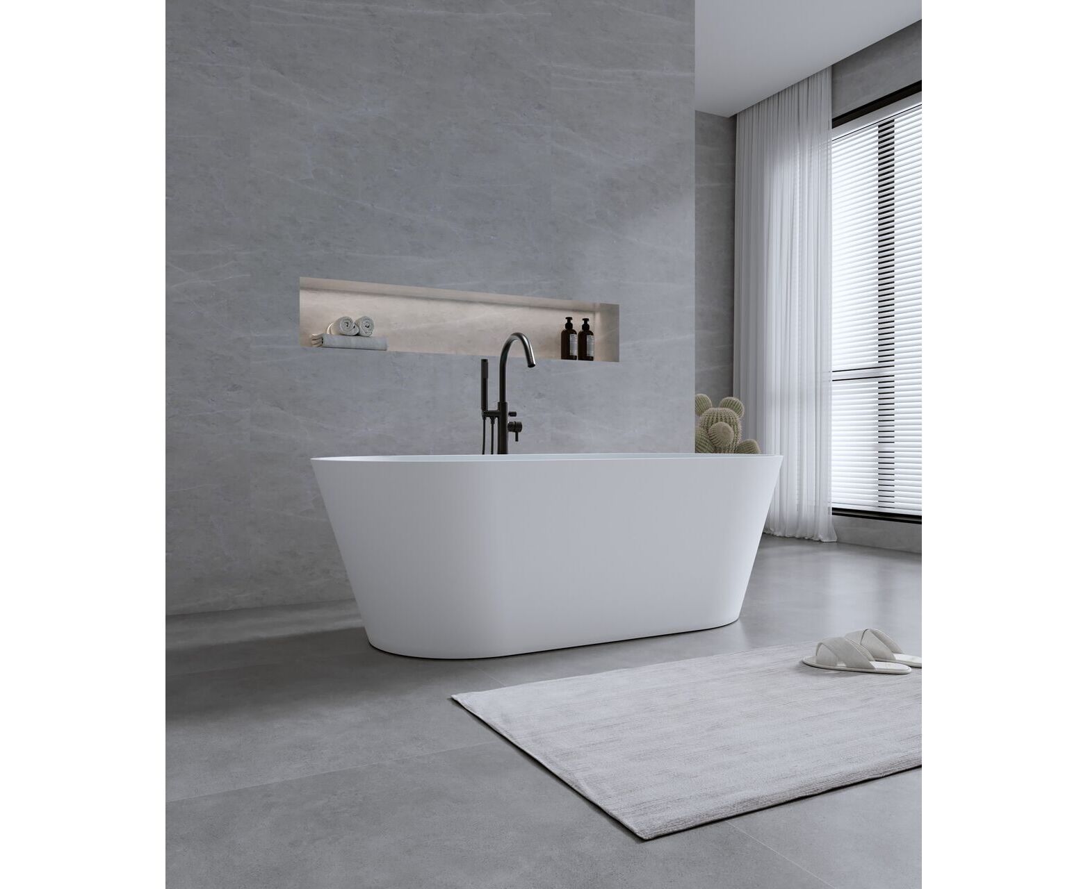Поверхность ванны приятная на ощупь и не холодная благодаря низкому уровню теплопроводности, что делает процесс эксплуатации очень приятным.