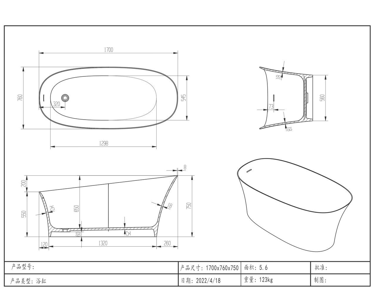 Характеристики Ванна Timo solid KIARA1700 1700х760х750