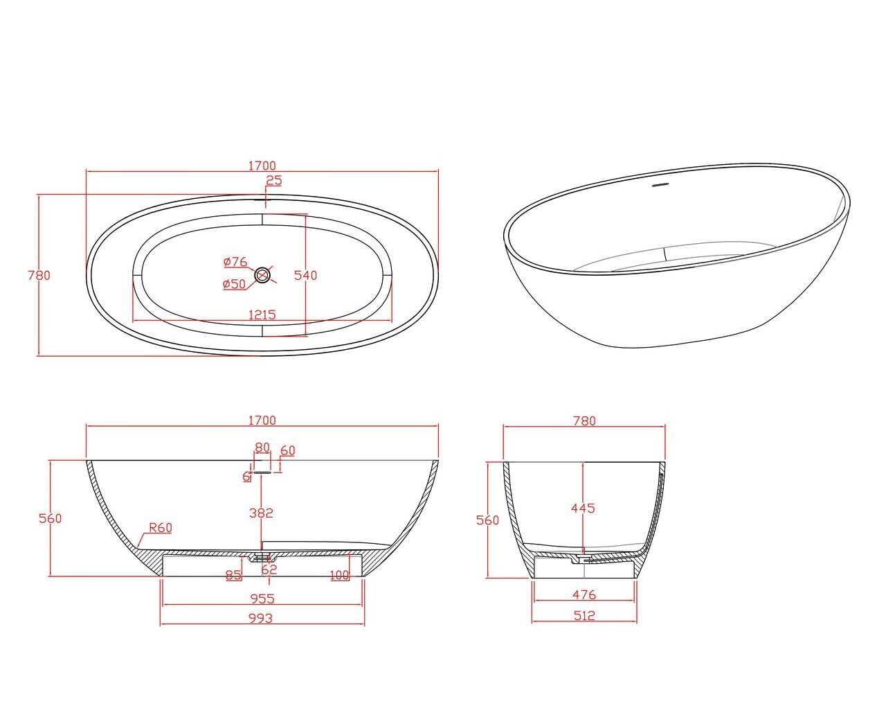 Характеристики Ванна Timo solid LEMPI1700 1700х780х560