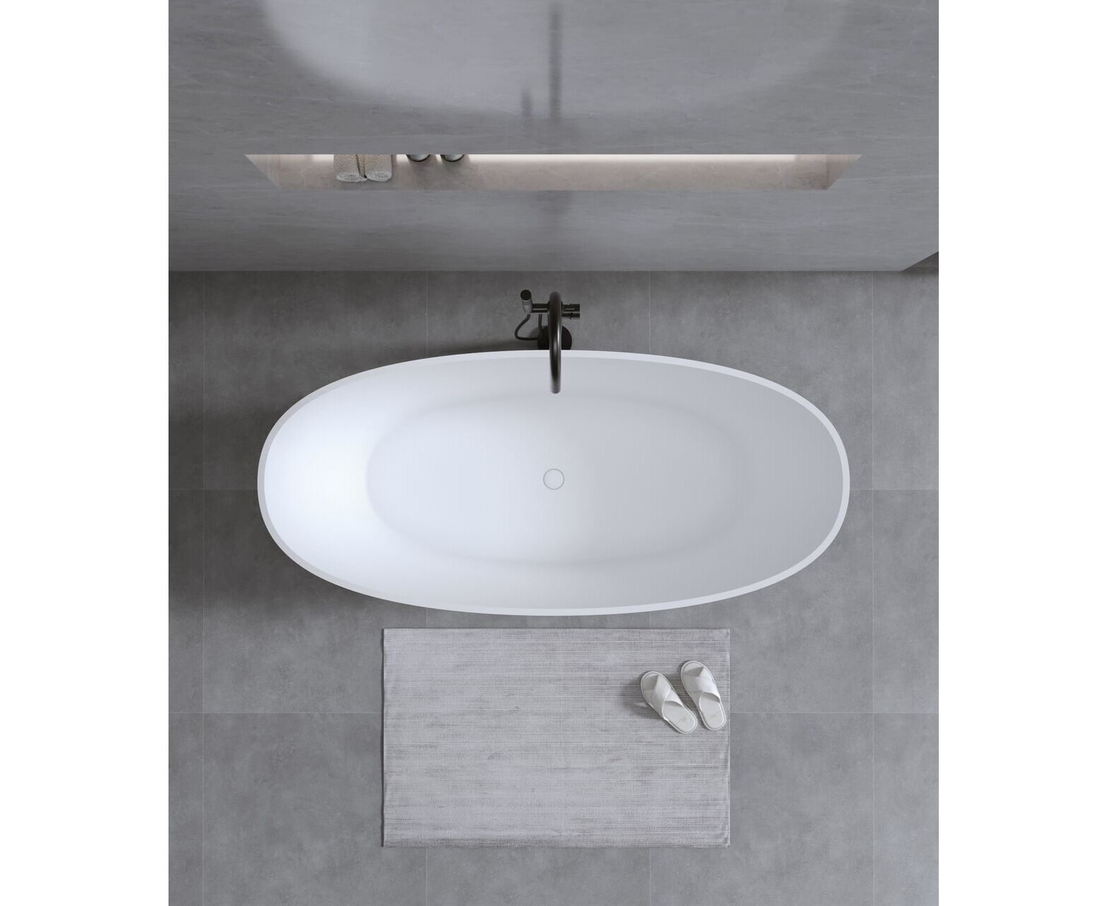 Поверхность ванны приятная на ощупь и не холодная благодаря низкому уровню теплопроводности, что делает процесс эксплуатации очень приятным.
