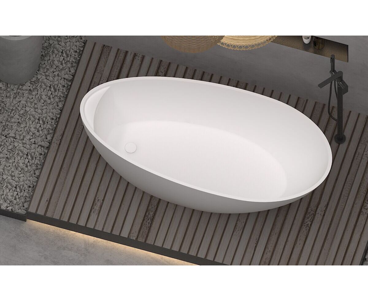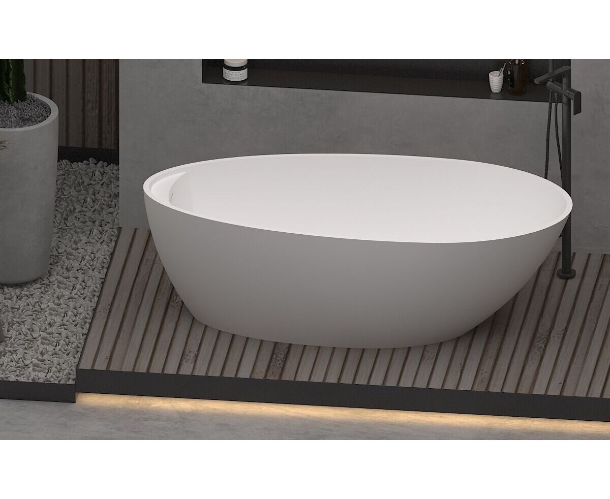 Поверхность ванны приятная на ощупь и не холодная благодаря низкому уровню теплопроводности, что делает процесс эксплуатации очень приятным.