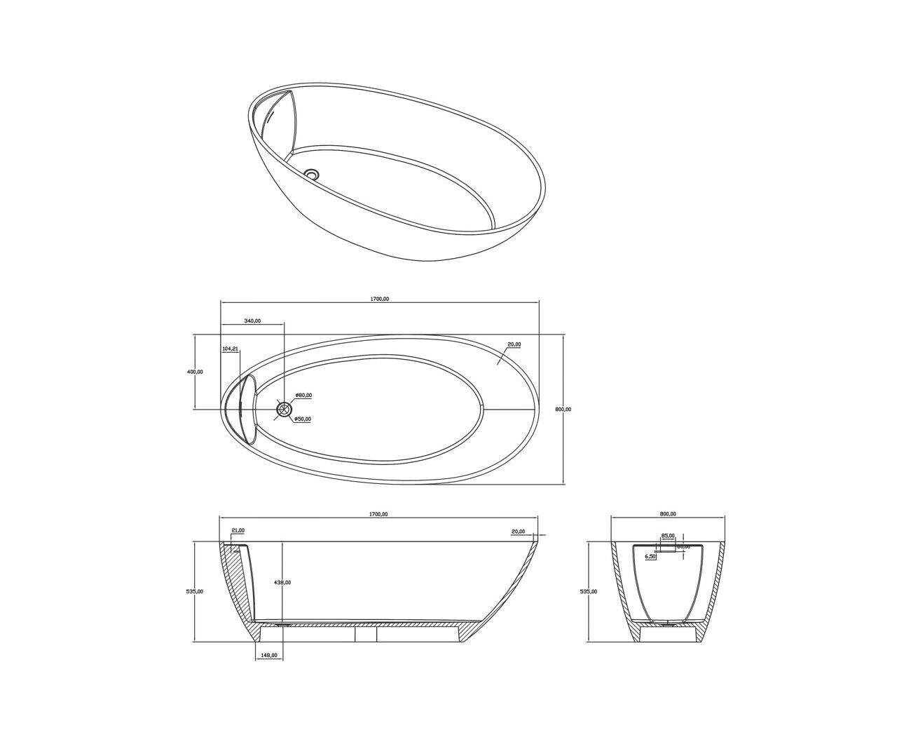 БрендTimo Длина, см170 Ширина, см80 Глубина, см43.8 Высота с опорой, см54 ФормаОвальная МатериалИскусственный камень СтранаКитай Гарантия2 года