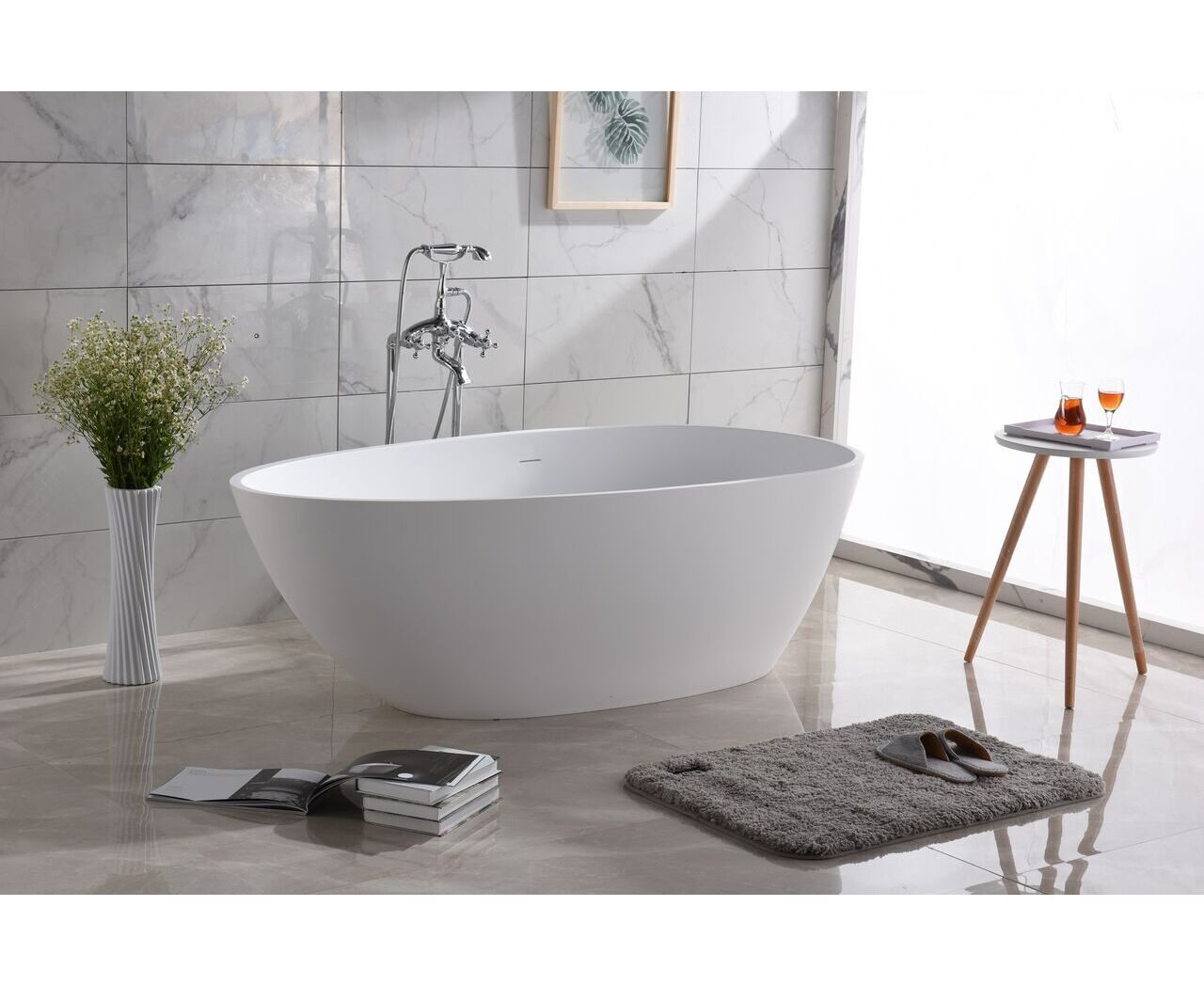 Поверхность ванны приятная на ощупь и не холодная благодаря низкому уровню теплопроводности, что делает процесс эксплуатации очень приятным.